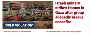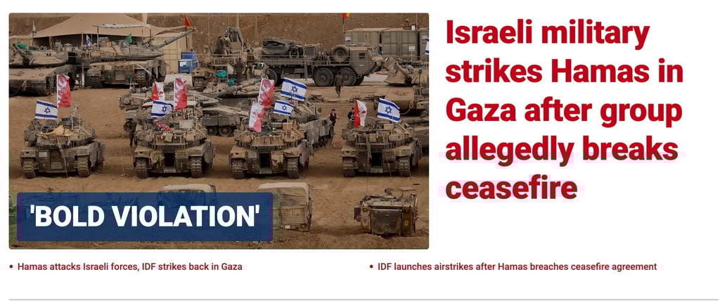 The western world awoke this morning to news that the conflict in Gaza was flaring up again. As a thought experiment, let's analyze the headline of the story from 6 separate outlets: